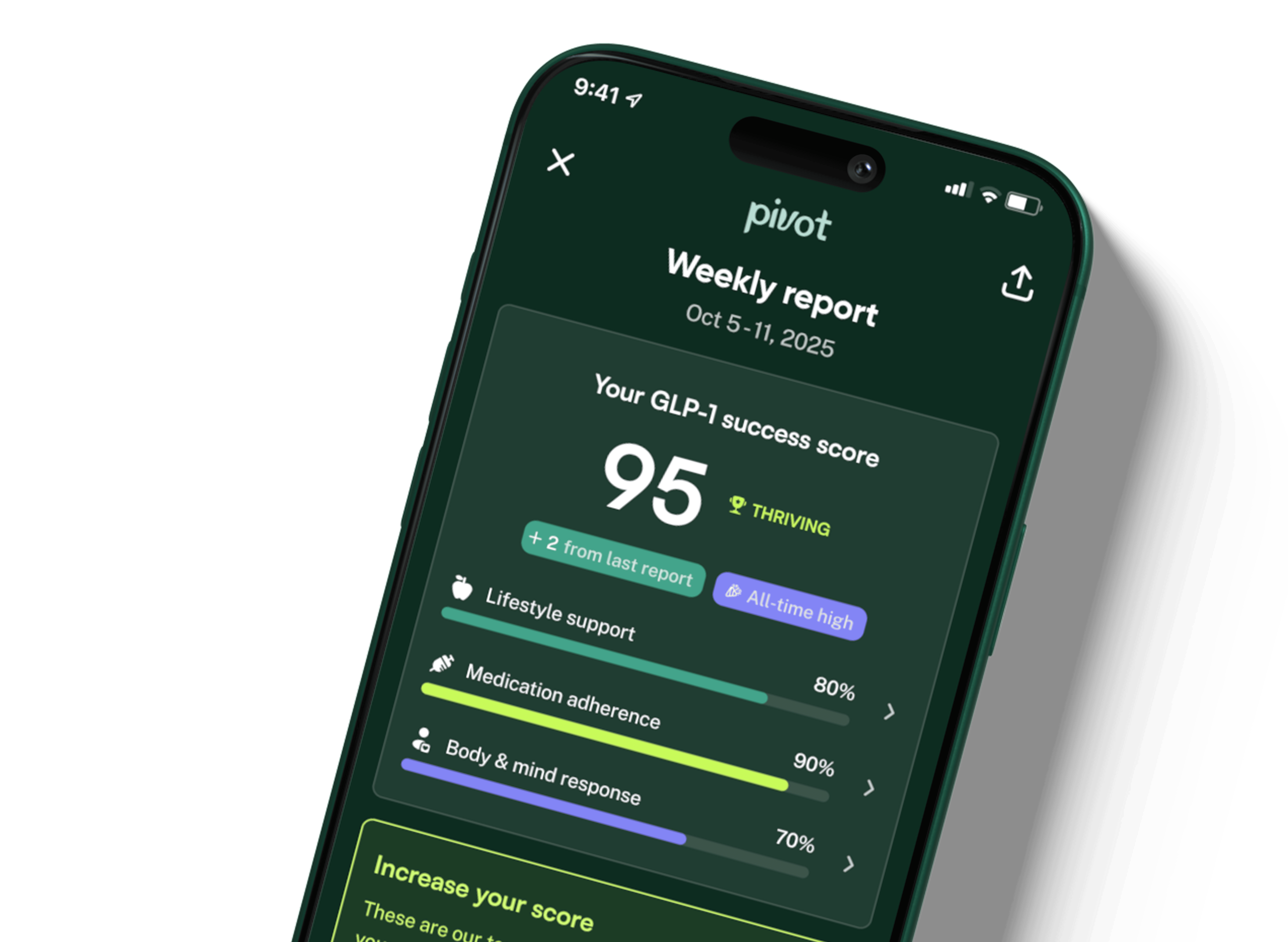 See how consistently you're showing up, not just the number on the scale. Your weekly score turns daily habits into a single honest snapshot of your progress.