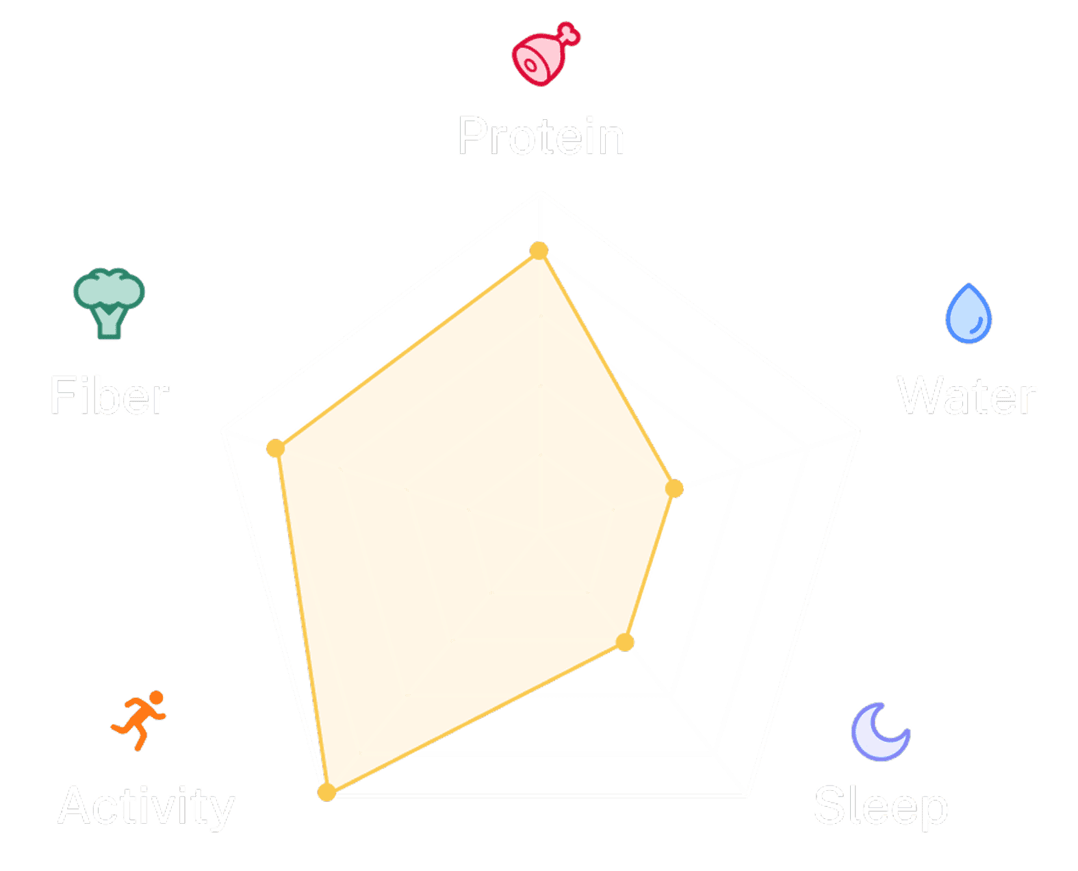 Check in on the habits that make or break your results: protein, hydration, sleep, movement, and more. Takes seconds. Adds up to real progress.